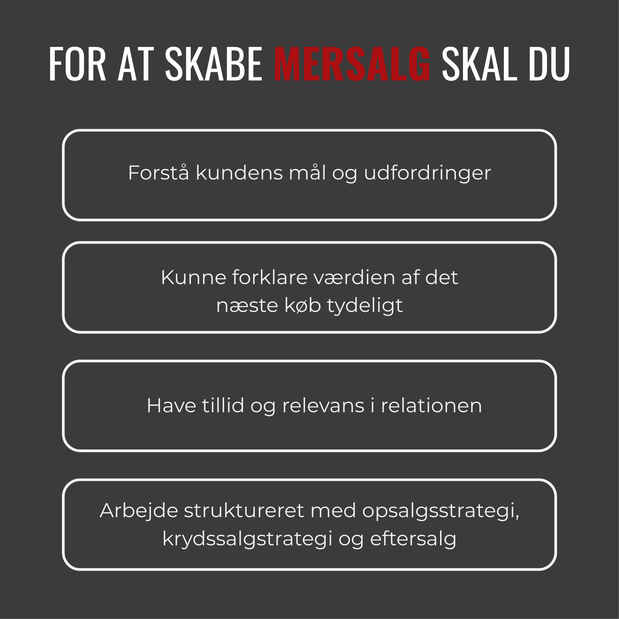 Mersalg skabes ved at forstå kundens behov, levere værdi og foreslå relevante løsninger på det rette tidspunkt.